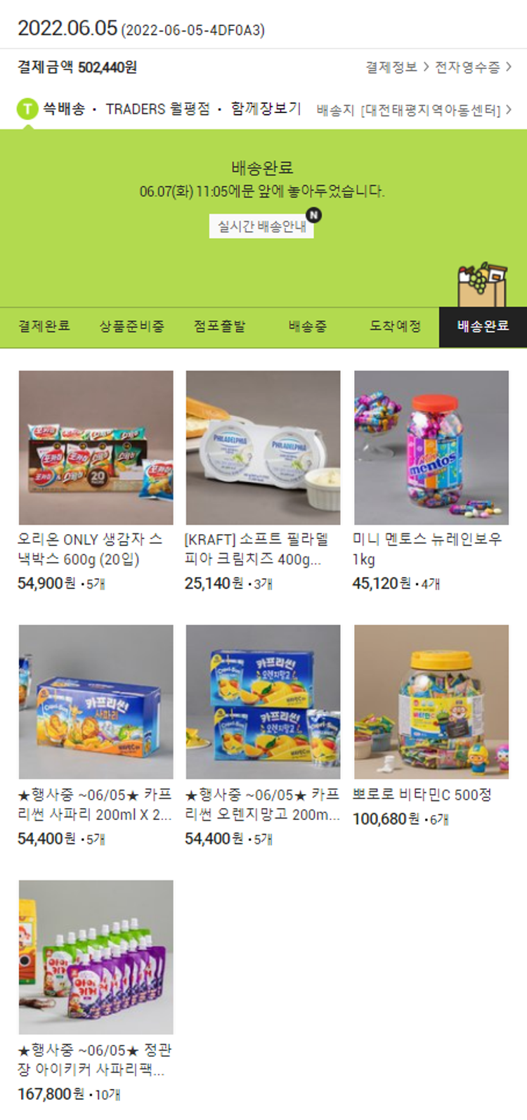 기부자님이 사용한 기부포인트 5,000원, 가격상승분 5,380원, 100원 미만 지원금 60원, 결제 수수료 13,705원, 기타 사업비는 행복나눔재단이 부담했습니다. (기부후기 발송시점에 최종 업데이트 됩니다.) 실제 쇼핑몰에서 확인되는 배송현황을 캡처한 내용입니다. 실시간 자료와는 차이가 있을 수 있습니다.