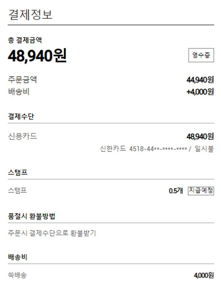 기부자님이 사용한 기부포인트 40,150원, 물품배송비 4,000원, 가격상승분 5,440원, 100원 미만 지원금 40원, 결제 수수료 10,392원, 기타 사업비는 행복나눔재단이 부담했습니다. (기부후기 발송시점에 최종 업데이트 됩니다.) 실제 쇼핑몰에서 확인되는 배송현황을 캡처한 내용입니다. 실시간 자료와는 차이가 있을 수 있습니다.