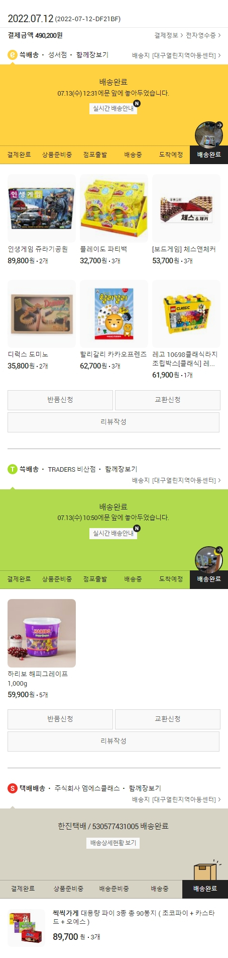 물품배송비 4,000원, 기타 사업비는 행복나눔재단이 부담했습니다. (기부후기 발송시점에 최종 업데이트 됩니다.) 실제 쇼핑몰에서 확인되는 배송현황을 캡처한 내용입니다. 실시간 자료와는 차이가 있을 수 있습니다.