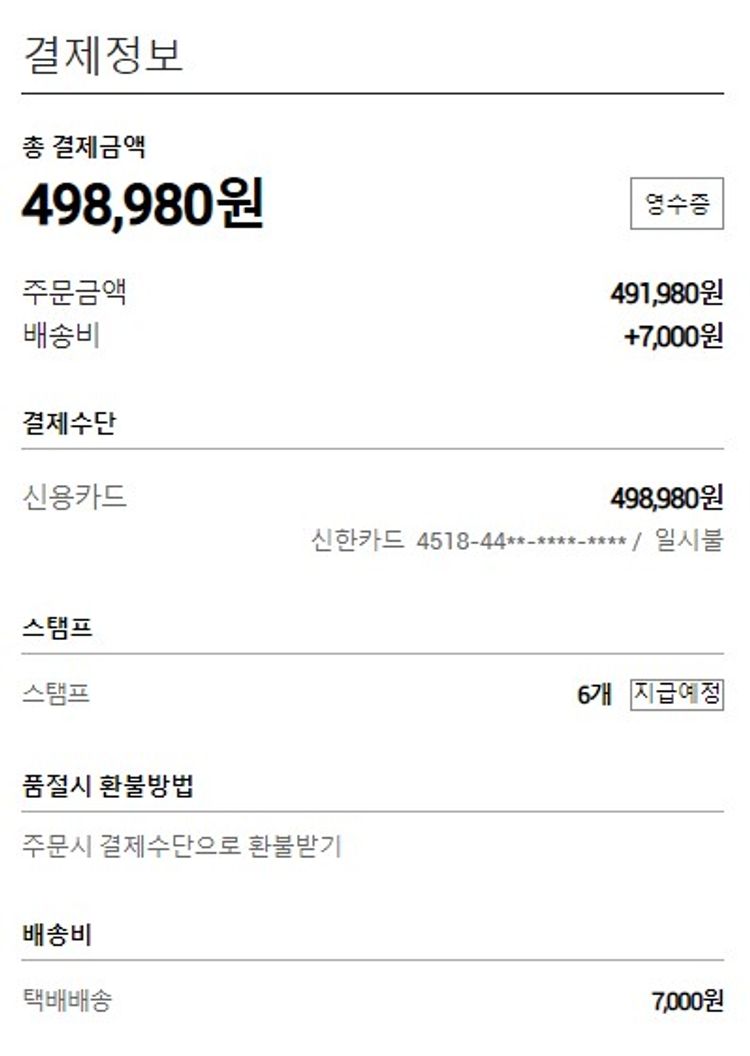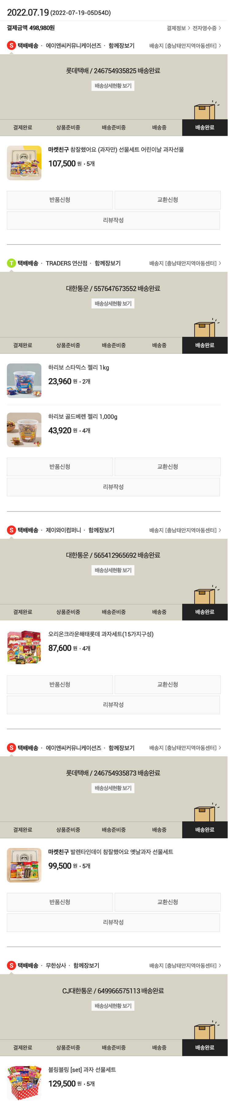 기부자님이 사용한 기부포인트 77,650원, 물품배송비 7,000원, 100원 미만 지원금 80원, 결제 수수료 8,453원, 기타 사업비는 행복나눔재단이 부담했습니다. (기부후기 발송시점에 최종 업데이트 됩니다.) 실제 쇼핑몰에서 확인되는 배송현황을 캡처한 내용입니다. 실시간 자료와는 차이가 있을 수 있습니다.