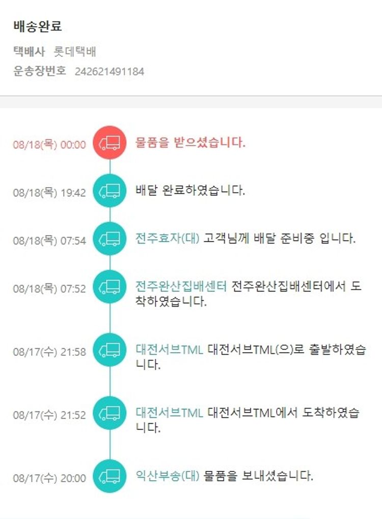기부자님이 사용한 기부포인트 14,550원, 물품배송비 4,000원, 가격상승분 1,195원, 100원 미만 지원금 8원, 결제 수수료 11,755원, 기타 사업비는 행복나눔재단이 부담했습니다. (기부후기 발송시점에 최종 업데이트 됩니다.) 실제 쇼핑몰에서 확인되는 배송현황을 캡처한 내용입니다. 실시간 자료와는 차이가 있을 수 있습니다.