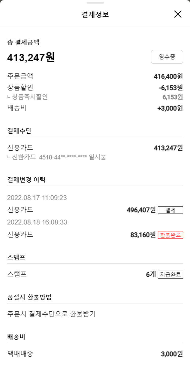 기부자님이 사용한 기부포인트 29,000원, 물품배송비 6,500원, 가격상승분 10,097원, 100원 미만 지원금 50원, 결제 수수료 10,920원, 기타 사업비는 행복나눔재단이 부담했습니다. (기부후기 발송시점에 최종 업데이트 됩니다.) 실제 쇼핑몰에서 확인되는 배송현황을 캡처한 내용입니다. 실시간 자료와는 차이가 있을 수 있습니다.