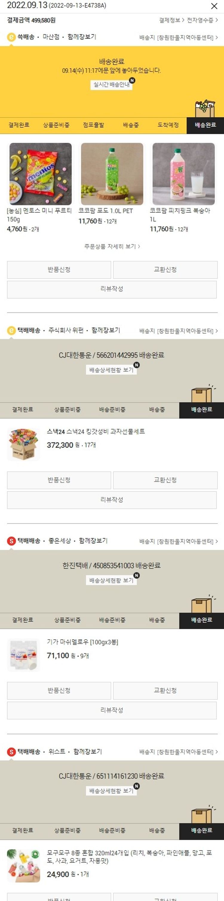 기부자님이 사용한 기부포인트 39,000원, 물품배송비 3,000원, 100원 미만 지원금 80원, 결제 수수료 13,488원, 기타 사업비는 행복나눔재단이 부담했습니다. (기부후기 발송시점에 최종 업데이트 됩니다.) 실제 쇼핑몰에서 확인되는 배송현황을 캡처한 내용입니다. 실시간 자료와는 차이가 있을 수 있습니다.
