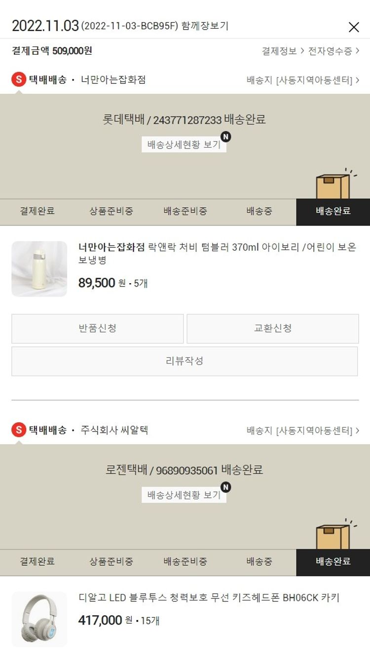 물품배송비 2,500원, 가격상승분 6,500원, 결제 수수료 9,350원, 기타 사업비는 행복나눔재단이 부담했습니다. (기부후기 발송시점에 최종 업데이트 됩니다.) 실제 쇼핑몰에서 확인되는 배송현황을 캡처한 내용입니다. 실시간 자료와는 차이가 있을 수 있습니다.