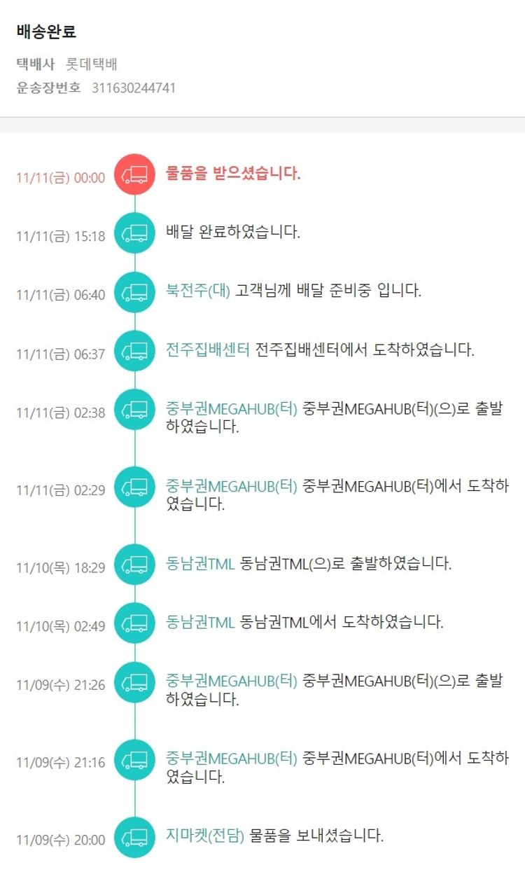 기부자님이 사용한 기부포인트 3,000원, 가격상승분 34,840원, 100원 미만 지원금 80원, 결제 수수료 12,098원, 기타 사업비는 행복나눔재단이 부담했습니다. (기부후기 발송시점에 최종 업데이트 됩니다.) 실제 쇼핑몰에서 확인되는 배송현황을 캡처한 내용입니다. 실시간 자료와는 차이가 있을 수 있습니다.