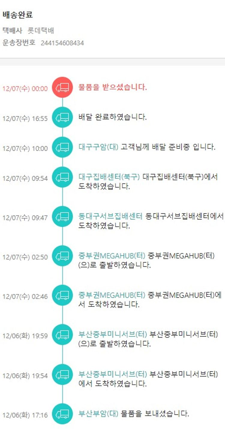 기부자님이 사용한 기부포인트 12,000원, 물품배송비 7,000원, 가격상승분 1,966원, 100원 미만 지원금 74원, 결제 수수료 10,275원, 기타 사업비는 행복나눔재단이 부담했습니다. (기부후기 발송시점에 최종 업데이트 됩니다.) 실제 쇼핑몰에서 확인되는 배송현황을 캡처한 내용입니다. 실시간 자료와는 차이가 있을 수 있습니다.