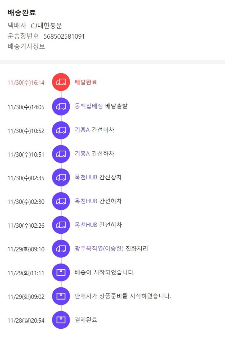 기부자님이 사용한 기부포인트 16,100원, 물품배송비 6,000원, 가격상승분 13,674원, 100원 미만 지원금 96원, 결제 수수료 10,265원, 기타 사업비는 행복나눔재단이 부담했습니다. (기부후기 발송시점에 최종 업데이트 됩니다.) 실제 쇼핑몰에서 확인되는 배송현황을 캡처한 내용입니다. 실시간 자료와는 차이가 있을 수 있습니다.