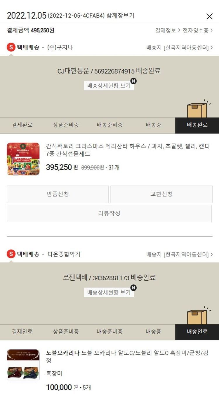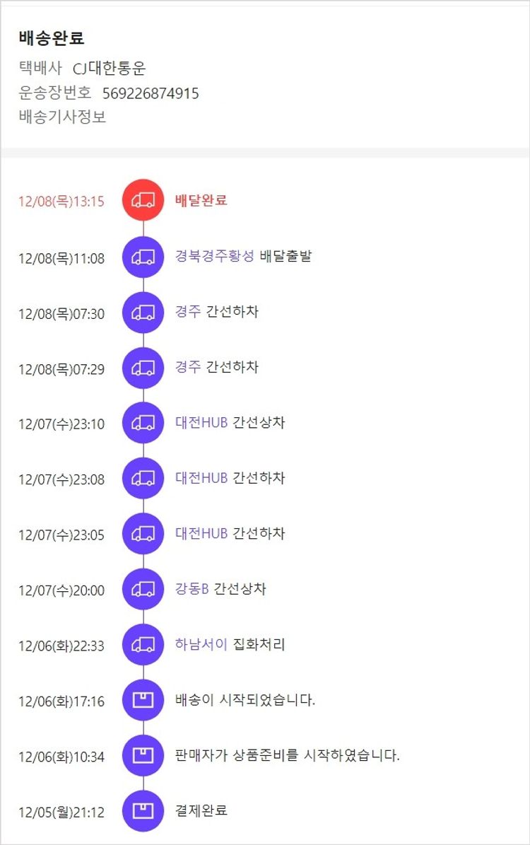 가격상승분 2,170원, 100원 미만 지원금 80원, 결제 수수료 12,287원, 기타 사업비는 행복나눔재단이 부담했습니다. (기부후기 발송시점에 최종 업데이트 됩니다.) 실제 쇼핑몰에서 확인되는 배송현황을 캡처한 내용입니다. 실시간 자료와는 차이가 있을 수 있습니다.
