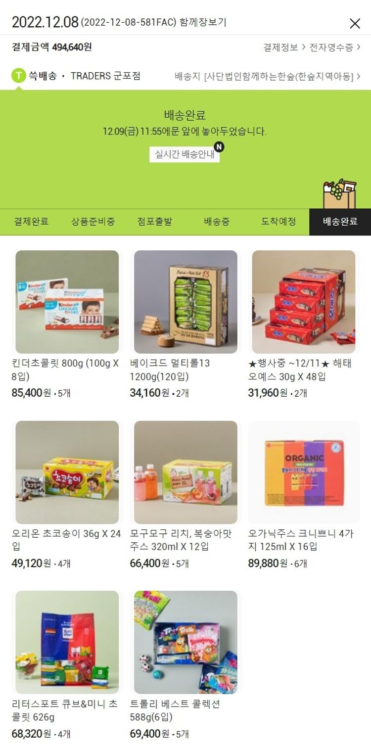 기부자님이 사용한 기부포인트 24,100원, 100원 미만 지원금 40원, 결제 수수료 11,817원, 기타 사업비는 행복나눔재단이 부담했습니다. (기부후기 발송시점에 최종 업데이트 됩니다.) 실제 쇼핑몰에서 확인되는 배송현황을 캡처한 내용입니다. 실시간 자료와는 차이가 있을 수 있습니다.