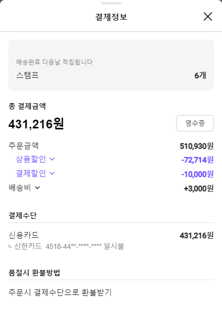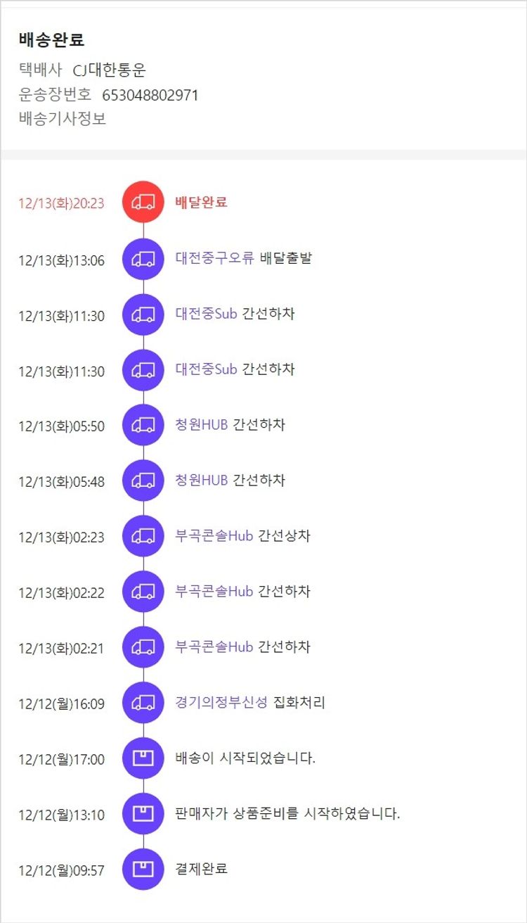 기부자님이 사용한 기부포인트 11,050원, 물품배송비 3,000원, 가격상승분 2,080원, 100원 미만 지원금 36원, 결제 수수료 10,502원, 기타 사업비는 행복나눔재단이 부담했습니다. (기부후기 발송시점에 최종 업데이트 됩니다.) 실제 쇼핑몰에서 확인되는 배송현황을 캡처한 내용입니다. 실시간 자료와는 차이가 있을 수 있습니다.