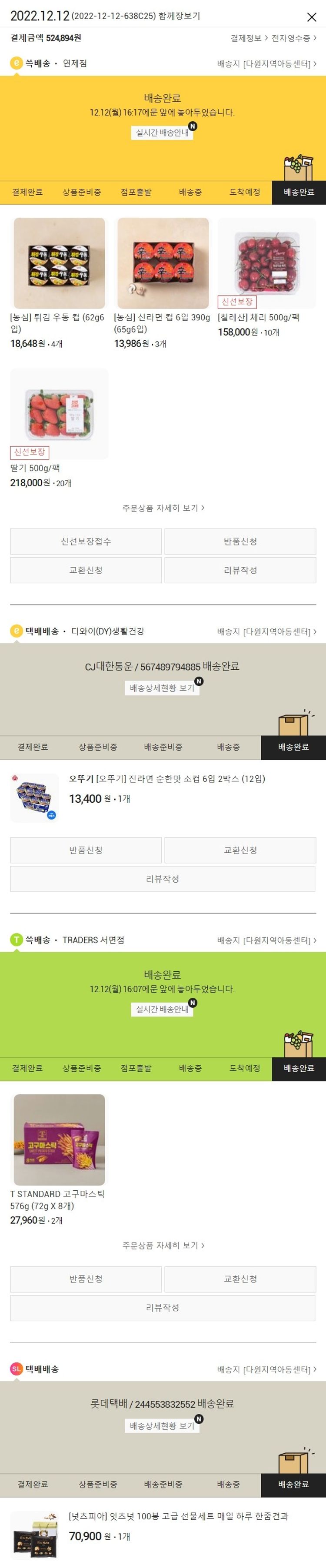 기부자님이 사용한 기부포인트 4,500원, 물품배송비 4,000원, 가격상승분 20,894원, 결제 수수료 12,086원, 기타 사업비는 행복나눔재단이 부담했습니다. (기부후기 발송시점에 최종 업데이트 됩니다.) 실제 쇼핑몰에서 확인되는 배송현황을 캡처한 내용입니다. 실시간 자료와는 차이가 있을 수 있습니다.