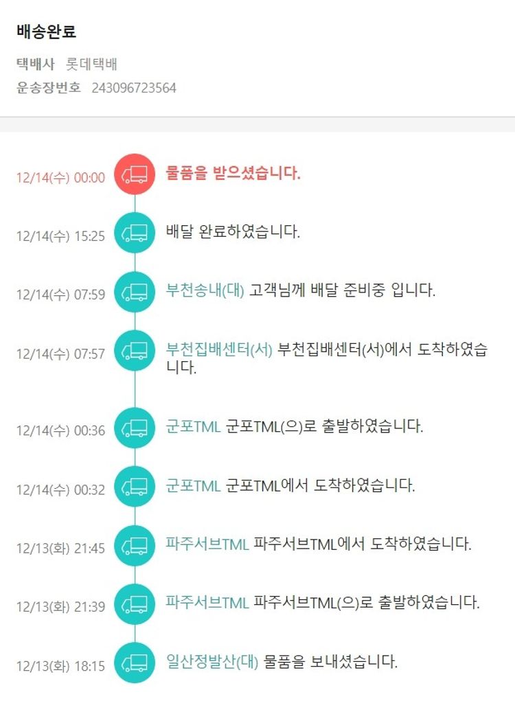 100원 미만 지원금 22원, 결제 수수료 9,282원, 기타 사업비는 행복나눔재단이 부담했습니다. (기부후기 발송시점에 최종 업데이트 됩니다.) 실제 쇼핑몰에서 확인되는 배송현황을 캡처한 내용입니다. 실시간 자료와는 차이가 있을 수 있습니다.