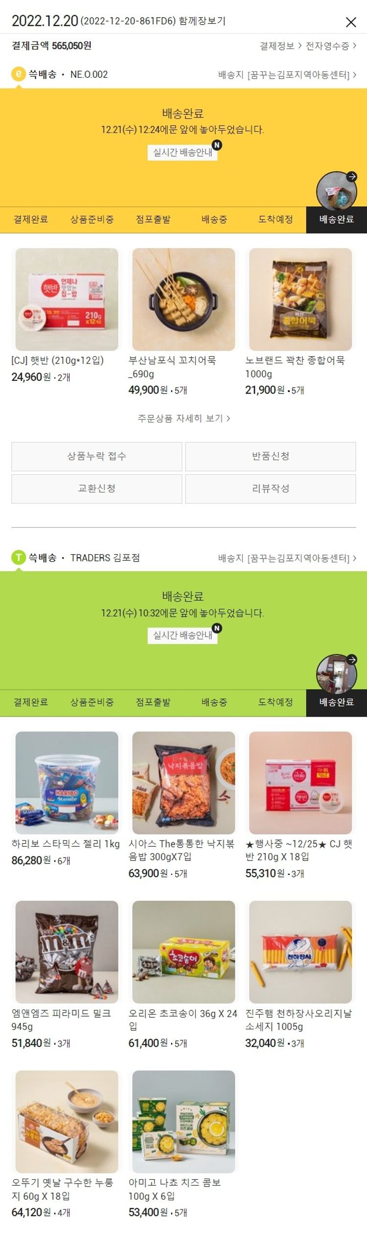 가격상승분 13,060원, 100원 미만 지원금 90원, 기타 사업비는 행복나눔재단이 부담했습니다. (기부후기 발송시점에 최종 업데이트 됩니다.) 실제 쇼핑몰에서 확인되는 배송현황을 캡처한 내용입니다. 실시간 자료와는 차이가 있을 수 있습니다.