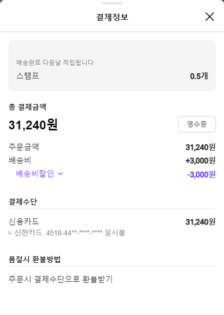 기부자님이 사용한 기부포인트 11,100원, 가격상승분 6,040원, 100원 미만 지원금 10원, 결제 수수료 11,022원, 기타 사업비는 행복나눔재단이 부담했습니다. (기부후기 발송시점에 최종 업데이트 됩니다.) 주문 후 품절건이 발생하여 2023.01.16. 유사 및 대체상품으로 재주문하였습니다. 실제 쇼핑몰에서 확인되는 배송현황을 캡처한 내용입니다. 실시간 자료와는 차이가 있을 수 있습니다.