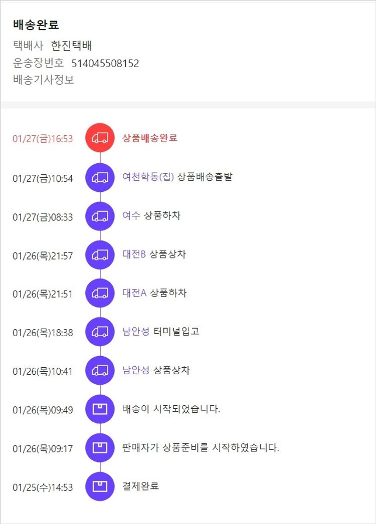 기부자님이 사용한 기부포인트 4,000원, 물품배송비 3,000원, 가격상승분 8,920원, 100원 미만 지원금 60원, 결제 수수료 11,056원, 기타 사업비는 행복나눔재단이 부담했습니다. (기부후기 발송시점에 최종 업데이트 됩니다.) 주문 완료건 중 품절건이 발생하여 2023.01.26. 대체물품으로 주문했습니다. 실제 쇼핑몰에서 확인되는 배송현황을 캡처한 내용입니다. 실시간 자료와는 차이가 있을 수 있습니다.