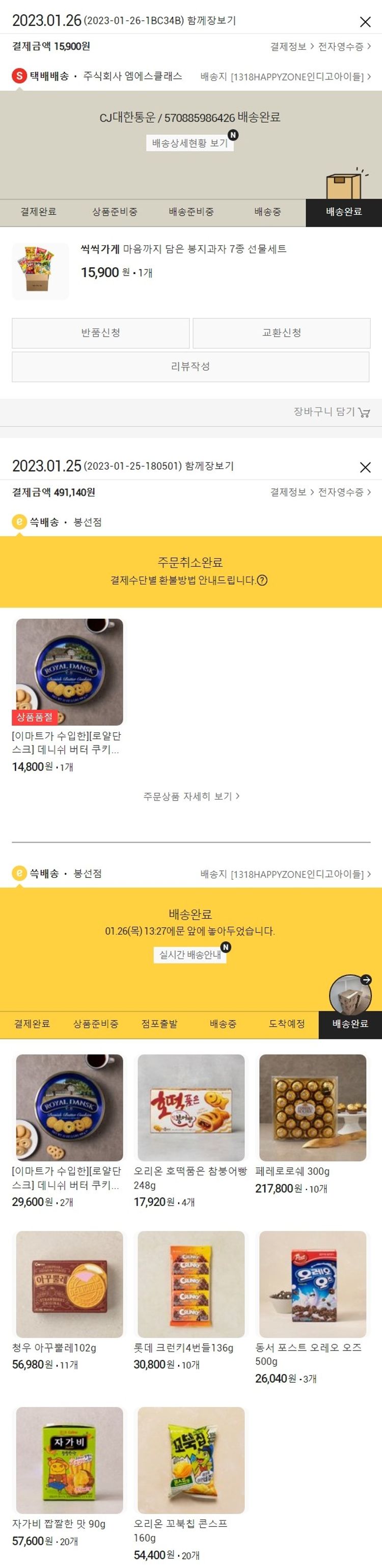 가격상승분 6,500원, 100원 미만 지원금 40원, 기타 사업비는 행복나눔재단이 부담했습니다. (기부후기 발송시점에 최종 업데이트 됩니다.) 주문 완료건 중 품절건이 발생하여 2023.01.26. 대체물품으로 주문했습니다. 실제 쇼핑몰에서 확인되는 배송현황을 캡처한 내용입니다. 실시간 자료와는 차이가 있을 수 있습니다.