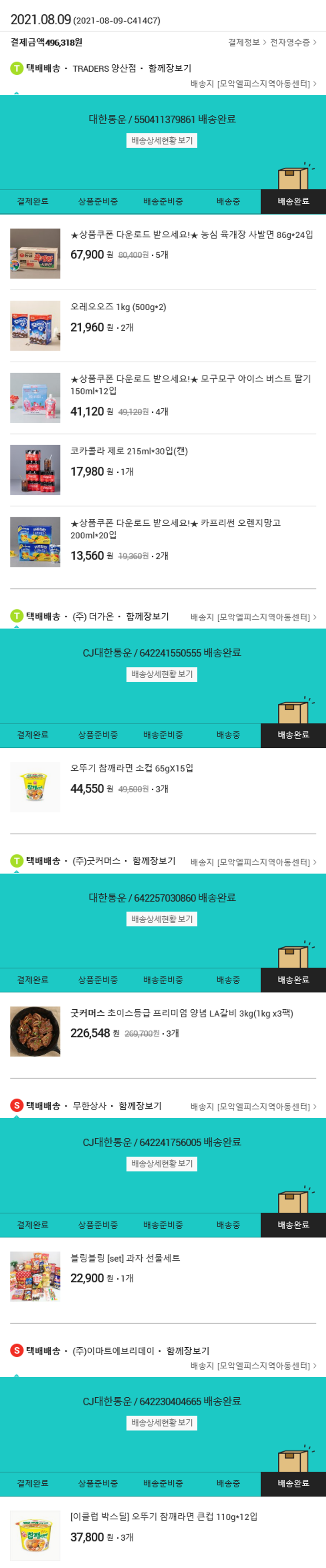 기부자님이 사용한 기부포인트 40,500원, 물품배송비 2,000원, 가격상승분 205원, 100원 미만 지원금 13원, 결제 수수료 12,210원, 기타 사업비는 행복나눔재단이 부담했습니다. (기부후기 발송시점에 최종 업데이트 됩니다.) 실제 쇼핑몰에서 확인되는 배송현황을 캡처한 내용입니다. 실시간 자료와는 차이가 있을 수 있습니다.