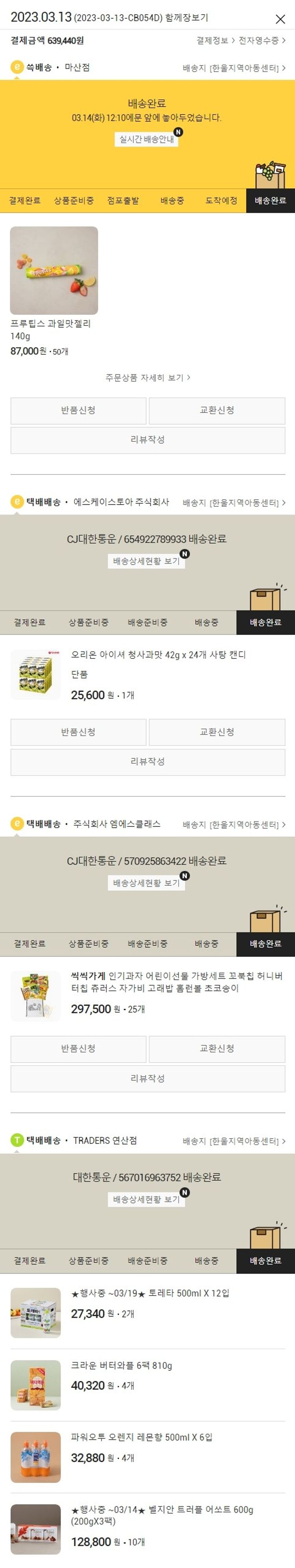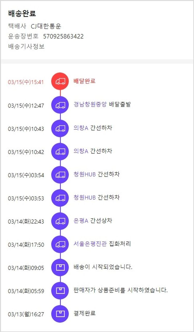 기부자님이 사용한 기부포인트 22,000원, 가격상승분 450원, 100원 미만 지원금 90원, 결제 수수료 12,963원, 기타 사업비는 행복나눔재단이 부담했습니다. (기부후기 발송시점에 최종 업데이트 됩니다.) 실제 쇼핑몰에서 확인되는 배송현황을 캡처한 내용입니다. 실시간 자료와는 차이가 있을 수 있습니다.