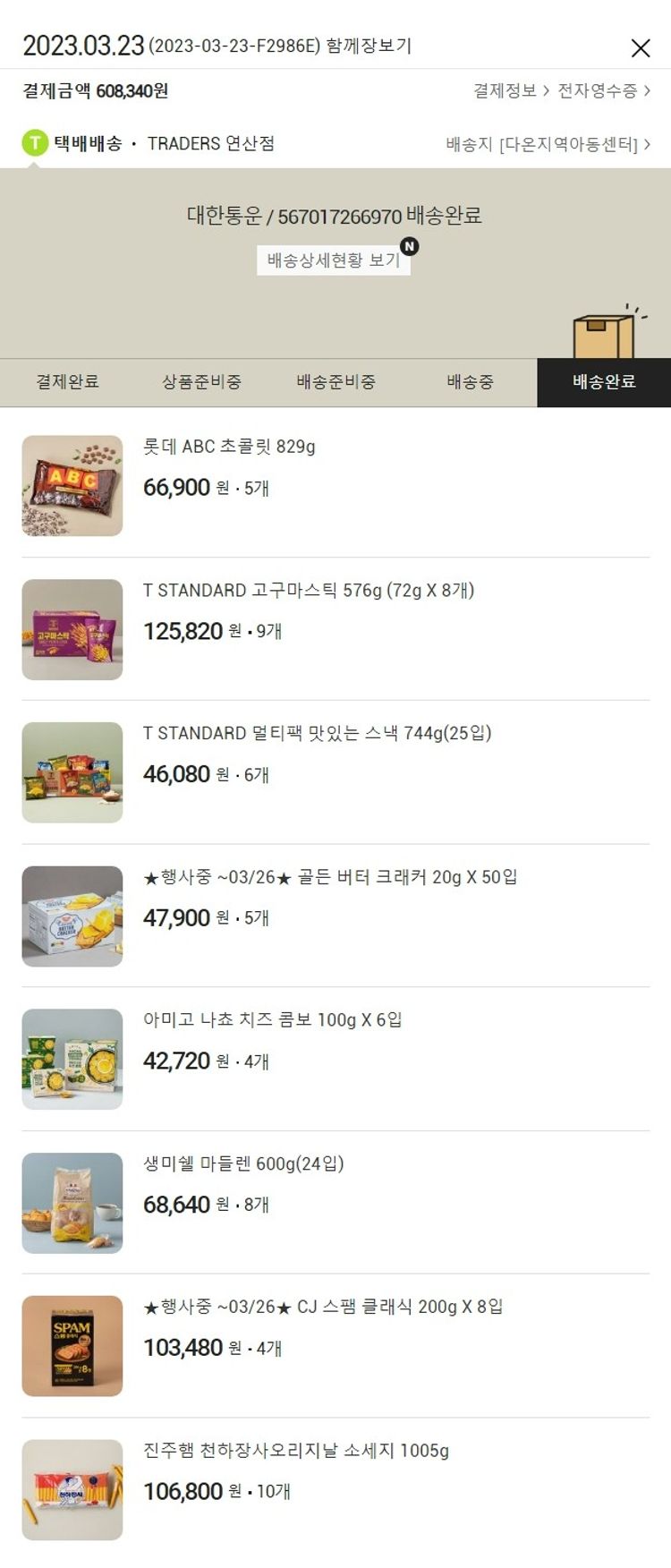 기부자님이 사용한 기부포인트 5,000원, 100원 미만 지원금 40원, 결제 수수료 21,236원, 기타 사업비는 행복나눔재단이 부담했습니다. (기부후기 발송시점에 최종 업데이트 됩니다.) 실제 쇼핑몰에서 확인되는 배송현황을 캡처한 내용입니다. 실시간 자료와는 차이가 있을 수 있습니다.