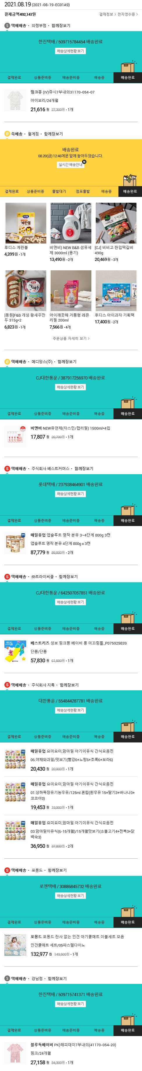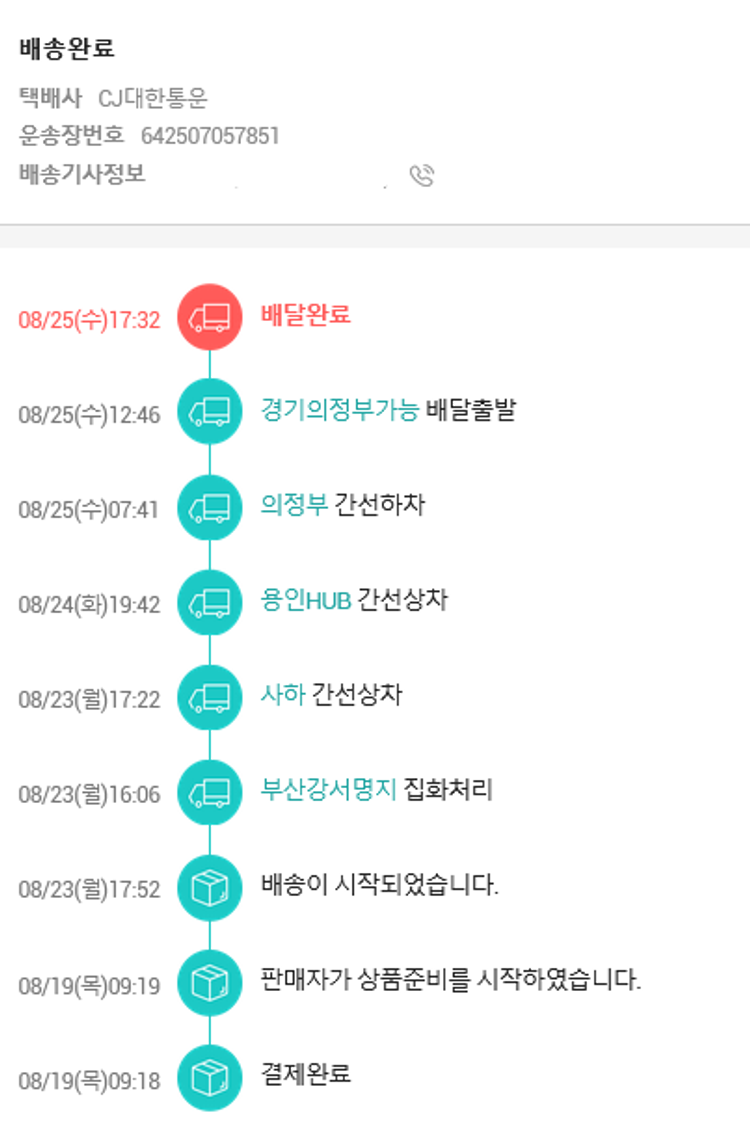 기부자님이 사용한 기부포인트 30,600원, 가격상승분 2,120원, 100원 미만 지원금 27원, 결제 수수료 11,235원, 기타 사업비는 행복나눔재단이 부담했습니다. (기부후기 발송시점에 최종 업데이트 됩니다.) 실제 쇼핑몰에서 확인되는 배송현황을 캡처한 내용입니다. 실시간 자료와는 차이가 있을 수 있습니다.