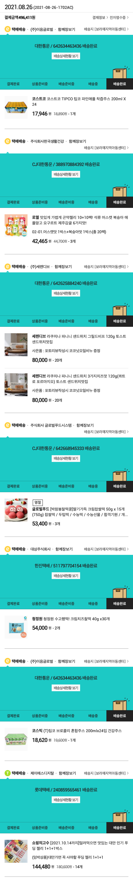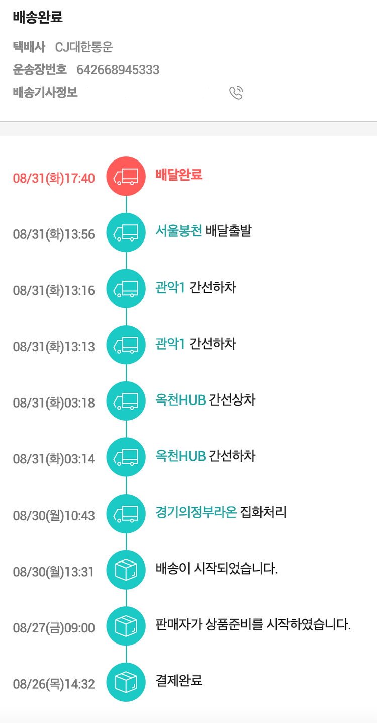 기부자님이 사용한 기부포인트 26,000원, 물품배송비 5,500원, 100원 미만 지원금 11원, 결제 수수료 14,677원, 기타 사업비는 행복나눔재단이 부담했습니다. (기부후기 발송시점에 최종 업데이트 됩니다.) 실제 쇼핑몰에서 확인되는 배송현황을 캡처한 내용입니다. 실시간 자료와는 차이가 있을 수 있습니다.
