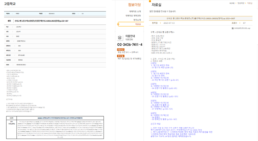 이번 2023년도 2학기 수학 문제집으로는 신사고 쎈 고등 수학2 (ISBN 9788928332052, 좋은책신사고)이 선정되었습니다.