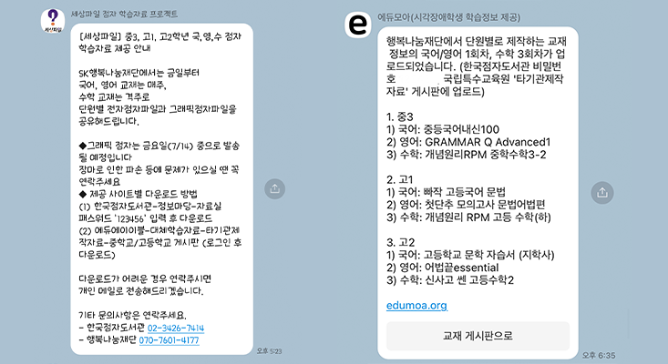 *국립특수교육원이 제작한 자료는 에듀에이블, 기타 자료는 행복나눔재단이 운영하는 에듀모아에서 확인할 수 있습니다.