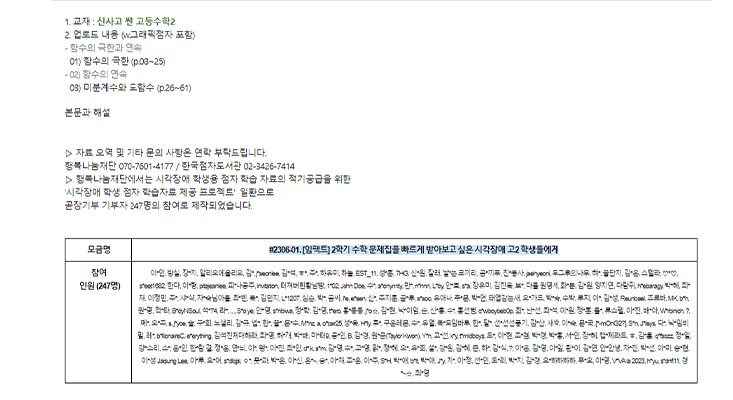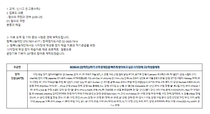 문제집을 기다리는 시간, 5개월 - 행복나눔재단 Project Note (링크)