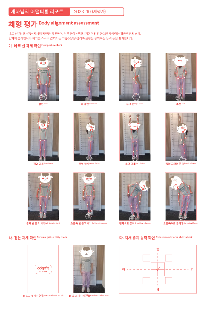 | 💪 재평가 (10월 2주 예정) 체형, 자세 및 신체 기능에 대한 재평가를 진행합니다. 초기 평가 때와 변화되는 지점을 확인합니다. |