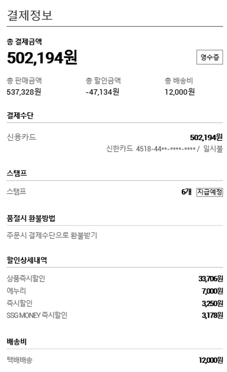 물품배송비 12,000원, 가격상승분 2,203원, 100원 미만 지원금 91원, 기타 사업비는 행복나눔재단이 부담했습니다. (기부후기 발송시점에 최종 업데이트 됩니다.) 실제 쇼핑몰에서 확인되는 배송현황을 캡처한 내용입니다. 실시간 자료와는 차이가 있을 수 있습니다.