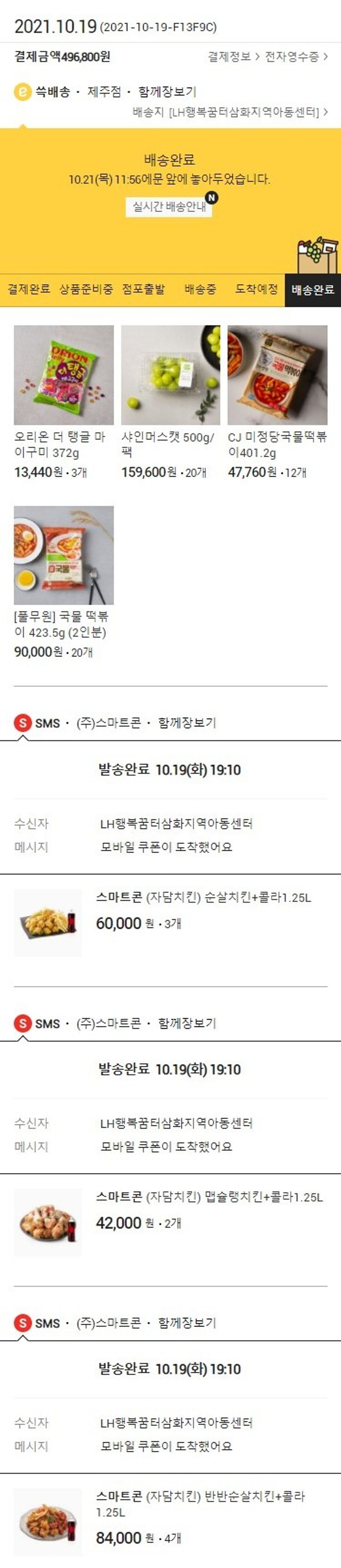 기부자님이 사용한 기부포인트 55,000원, 가격상승분 2,688원, 100원 미만 지원금 12원, 결제 수수료 11,585원, 기타 사업비는 행복나눔재단이 부담했습니다. (기부후기 발송시점에 최종 업데이트 됩니다.) 실제 쇼핑몰에서 확인되는 배송현황을 캡처한 내용입니다. 실시간 자료와는 차이가 있을 수 있습니다.