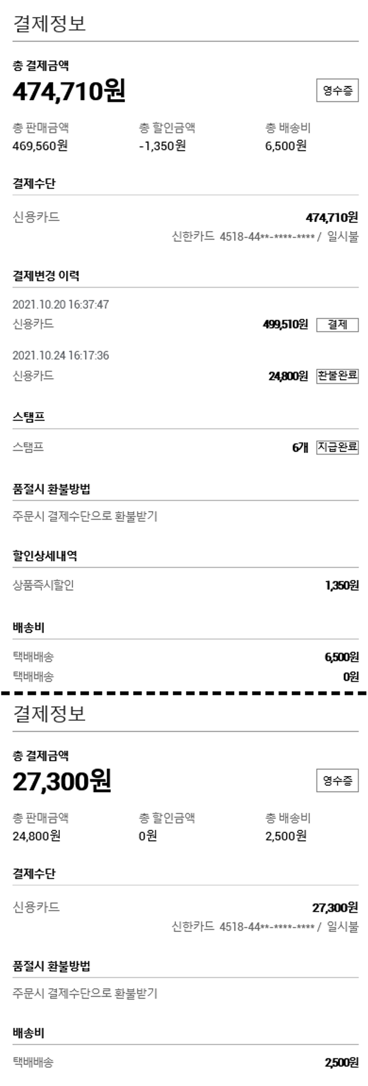 물품배송비 9,000원, 가격상승분 6,498원, 100원 미만 지원금 12원, 결제 수수료 10,835원, 기타 사업비는 행복나눔재단이 부담했습니다. (기부후기 발송시점에 최종 업데이트 됩니다.) 실제 쇼핑몰에서 확인되는 배송현황을 캡처한 내용입니다. 실시간 자료와는 차이가 있을 수 있습니다.