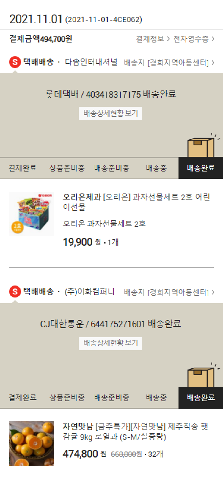 기부자님이 사용한 기부포인트 14,000원, 가격상승분 716원, 100원 미만 지원금 84원, 결제 수수료 15,314원, 기타 사업비는 행복나눔재단이 부담했습니다. (기부후기 발송시점에 최종 업데이트 됩니다.) 실제 쇼핑몰에서 확인되는 배송현황을 캡처한 내용입니다. 실시간 자료와는 차이가 있을 수 있습니다.