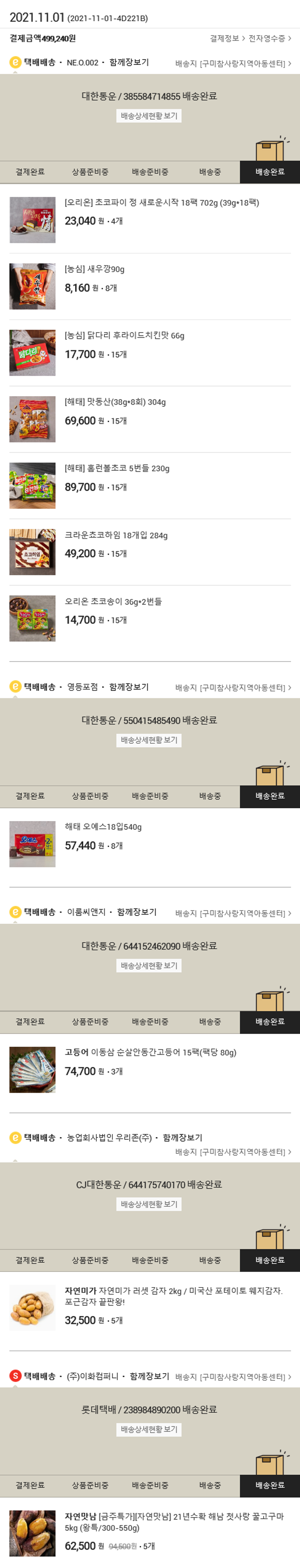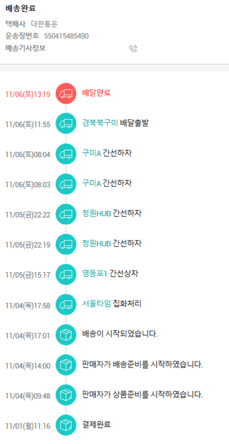 기부자님이 사용한 기부포인트 2,000원, 가격상승분 1,500원, 100원 미만 지원금 40원, 결제 수수료 10,905원, 기타 사업비는 행복나눔재단이 부담했습니다. (기부후기 발송시점에 최종 업데이트 됩니다.) 실제 쇼핑몰에서 확인되는 배송현황을 캡처한 내용입니다. 실시간 자료와는 차이가 있을 수 있습니다.