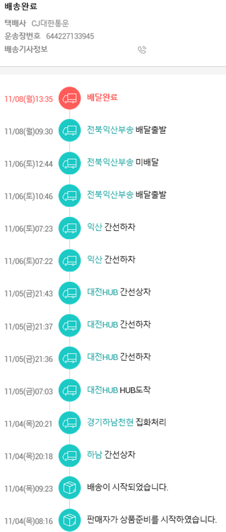 기부자님이 사용한 기부포인트 10,000원, 물품배송비 3,000원, 가격상승분 6,578원, 100원 미만 지원금 45원, 결제 수수료 16,839원, 기타 사업비는 행복나눔재단이 부담했습니다. (기부후기 발송시점에 최종 업데이트 됩니다.) 실제 쇼핑몰에서 확인되는 배송현황을 캡처한 내용입니다. 실시간 자료와는 차이가 있을 수 있습니다.