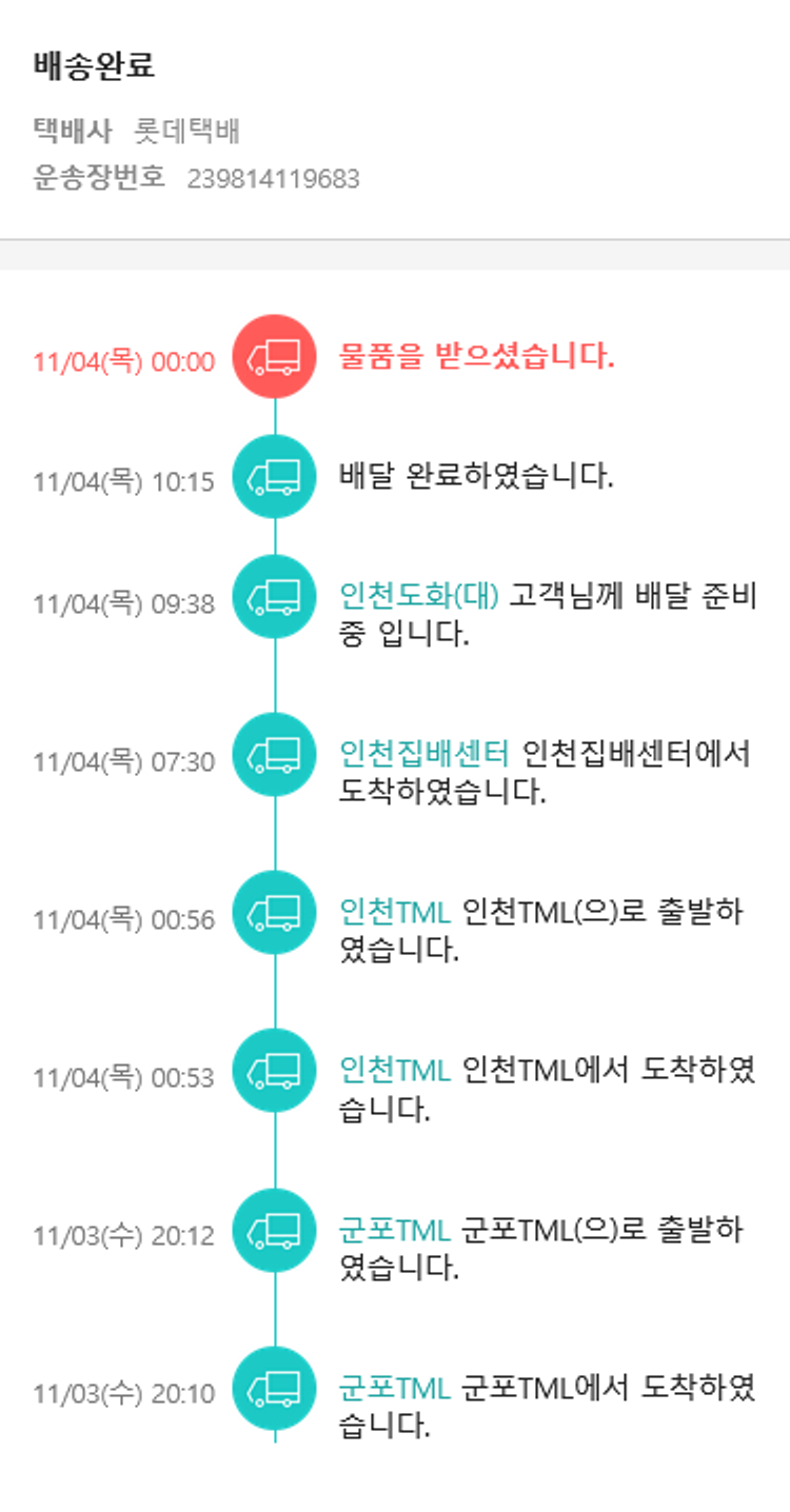 기부자님이 사용한 기부포인트 40,000원, 물품배송비 5,000원, 가격상승분 7,132원, 100원 미만 지원금 56원, 결제 수수료 10,856원, 기타 사업비는 행복나눔재단이 부담했습니다. (기부후기 발송시점에 최종 업데이트 됩니다.) 실제 쇼핑몰에서 확인되는 배송현황을 캡처한 내용입니다. 실시간 자료와는 차이가 있을 수 있습니다.
