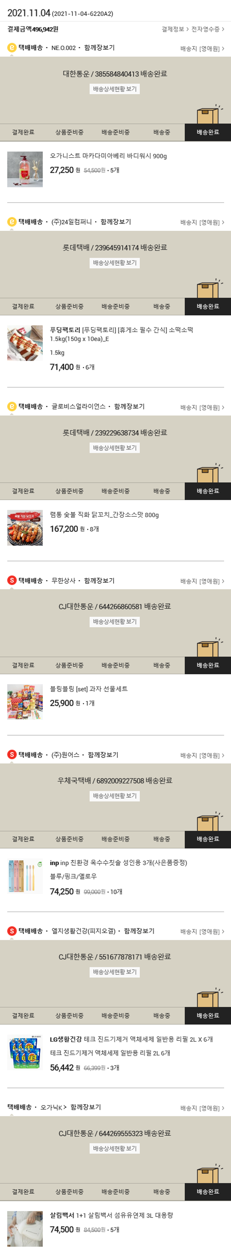 기부자님이 사용한 기부포인트 24,500원, 가격상승분 207원, 100원 미만 지원금 35원, 결제 수수료 11,168원, 기타 사업비는 행복나눔재단이 부담했습니다. (기부후기 발송시점에 최종 업데이트 됩니다.) 실제 쇼핑몰에서 확인되는 배송현황을 캡처한 내용입니다. 실시간 자료와는 차이가 있을 수 있습니다.