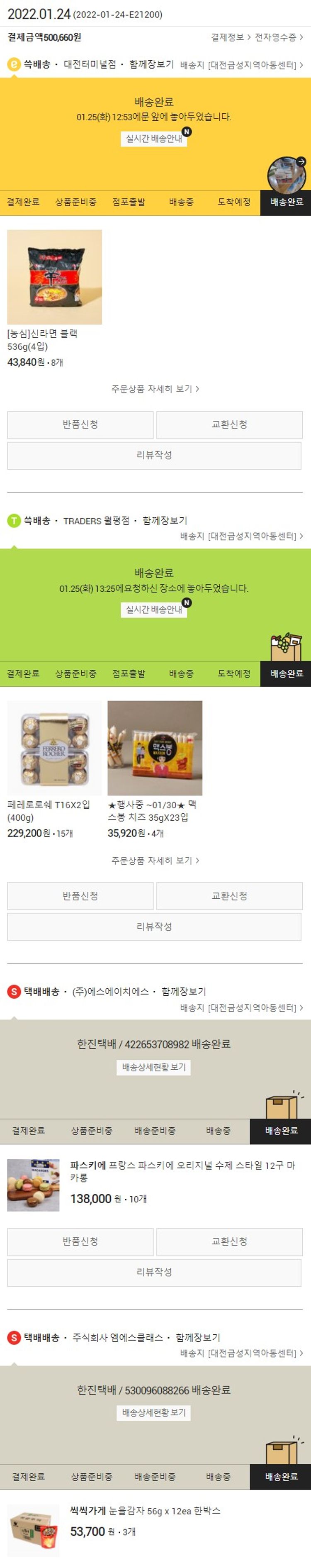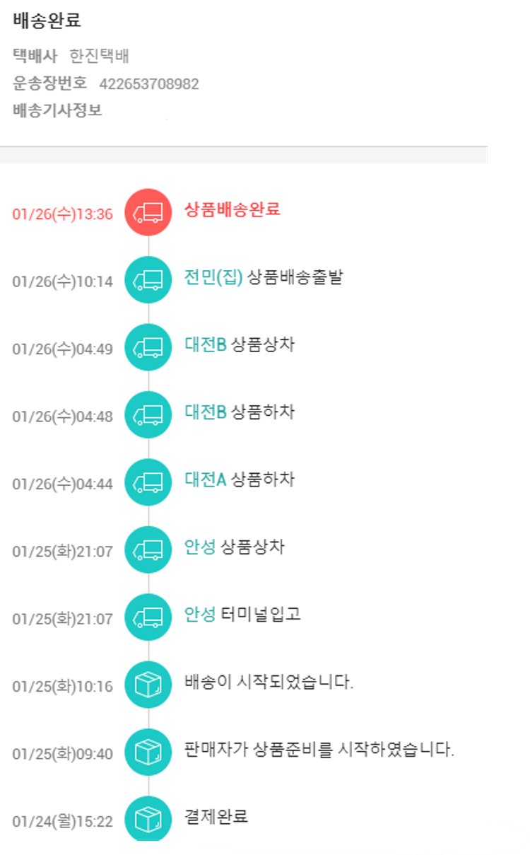 기부자님이 사용한 기부포인트 59,550원, 가격상승분 750원, 100원 미만 지원금 10원, 결제 수수료 11,606원, 기타 사업비는 행복나눔재단이 부담했습니다. (기부후기 발송시점에 최종 업데이트 됩니다.) 실제 쇼핑몰에서 확인되는 배송현황을 캡처한 내용입니다. 실시간 자료와는 차이가 있을 수 있습니다.