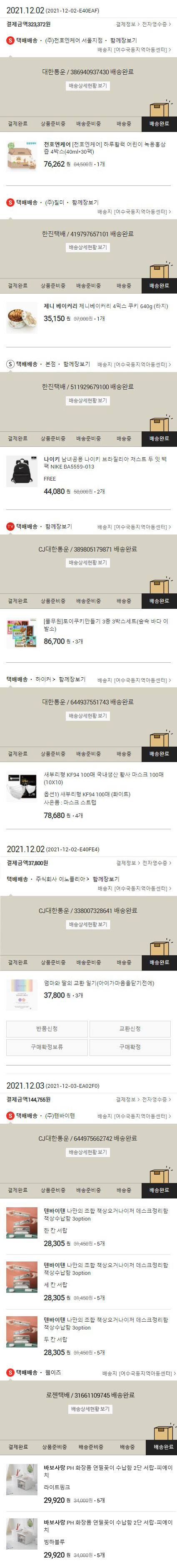물품배송비 2,500원, 가격상승분 10,502원, 100원 미만 지원금 25원, 결제 수수료 10,976원, 기타 사업비는 행복나눔재단이 부담했습니다. (기부후기 발송시점에 최종 업데이트 됩니다.) 실제 쇼핑몰에서 확인되는 배송현황을 캡처한 내용입니다. 실시간 자료와는 차이가 있을 수 있습니다.