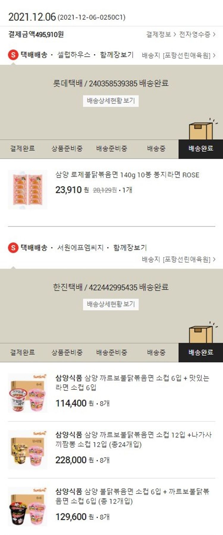 삼양 까르보불닭볶음면 소컵 6입 + 맛있는라면 소컵 6입8개 (개당 14,300원)