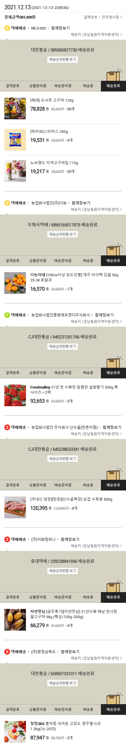 가격상승분 7,600원, 100원 미만 지원금 20원, 결제 수수료 10,863원, 기타 사업비는 행복나눔재단이 부담했습니다. (기부후기 발송시점에 최종 업데이트 됩니다.) 실제 쇼핑몰에서 확인되는 배송현황을 캡처한 내용입니다. 실시간 자료와는 차이가 있을 수 있습니다.