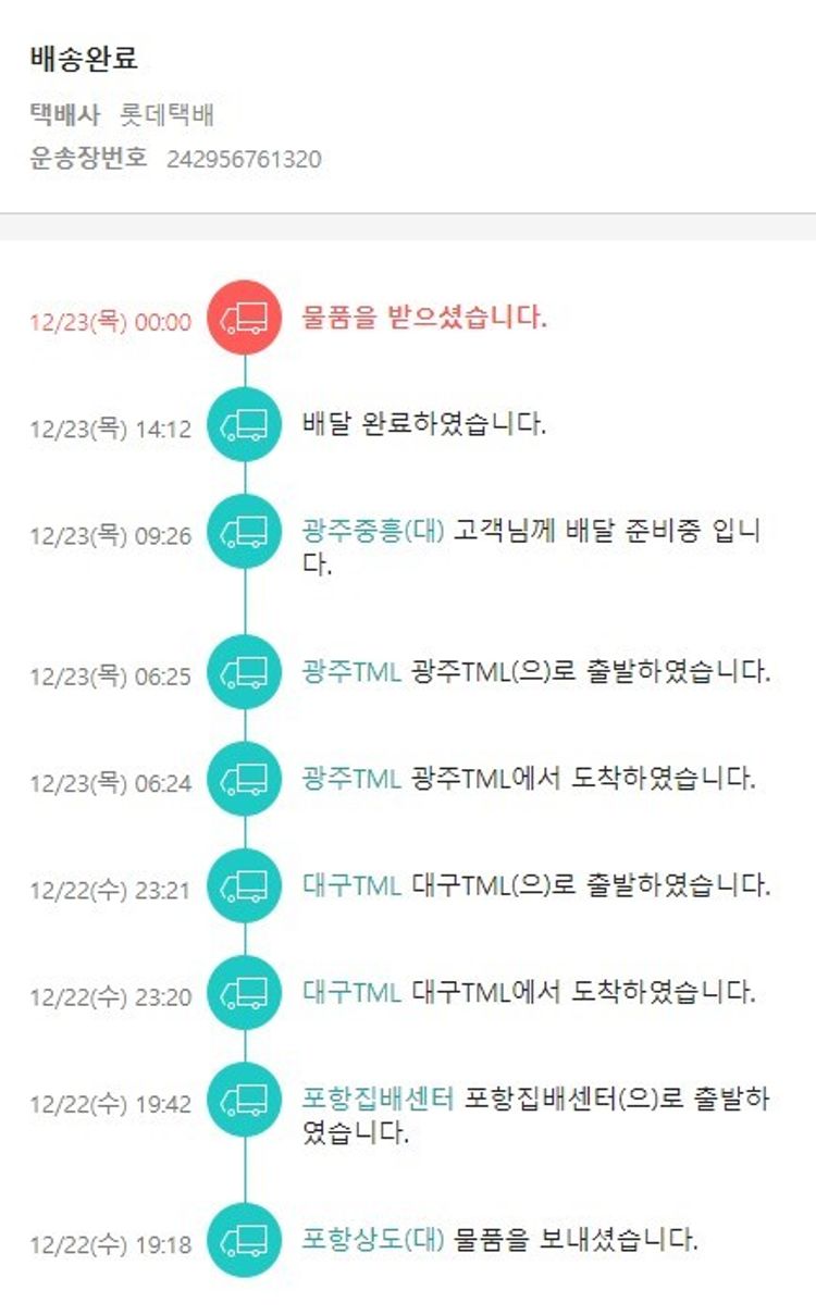 기부자님이 사용한 기부포인트 600원, 물품배송비 3,500원, 100원 미만 지원금 45원, 결제 수수료 11,506원, 기타 사업비는 행복나눔재단이 부담했습니다. (기부후기 발송시점에 최종 업데이트 됩니다.) 실제 쇼핑몰에서 확인되는 배송현황을 캡처한 내용입니다. 실시간 자료와는 차이가 있을 수 있습니다.