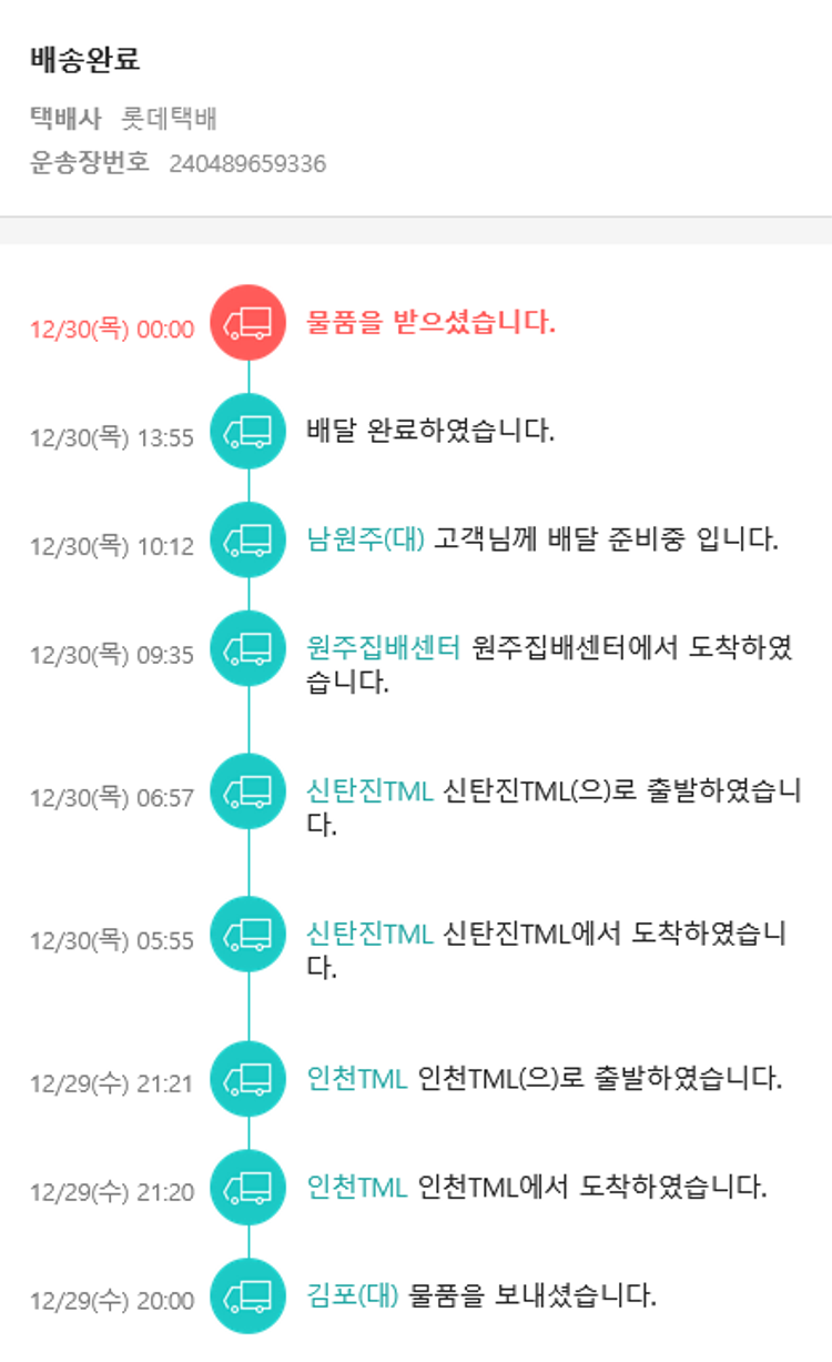 기부자님이 사용한 기부포인트 15,000원, 물품배송비 9,500원, 가격상승분 1,450원, 100원 미만 지원금 50원, 결제 수수료 14,337원, 기타 사업비는 행복나눔재단이 부담했습니다. (기부후기 발송시점에 최종 업데이트 됩니다.) 실제 쇼핑몰에서 확인되는 배송현황을 캡처한 내용입니다. 실시간 자료와는 차이가 있을 수 있습니다.