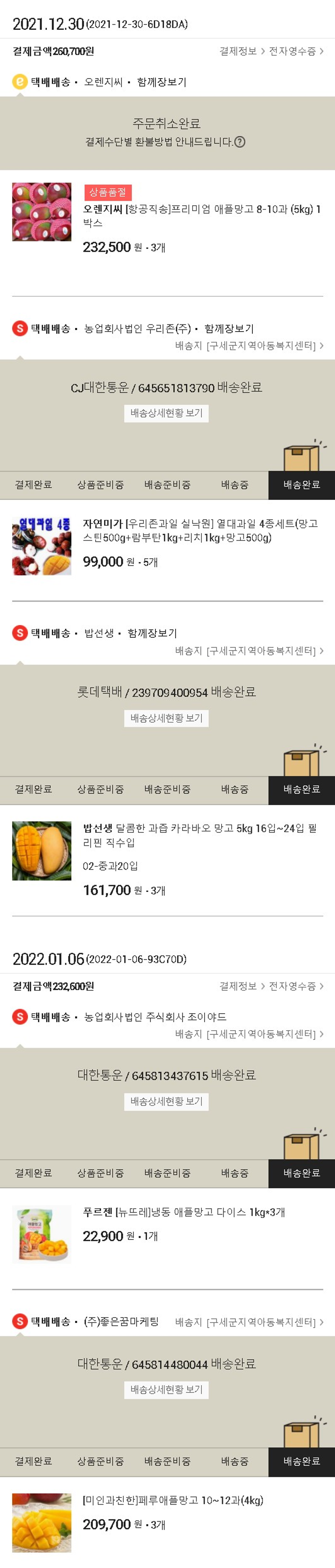 기부자님이 사용한 기부포인트 21,600원, 가격상승분 100원, 결제 수수료 6,208원, 기타 사업비는 행복나눔재단이 부담했습니다. (기부후기 발송시점에 최종 업데이트 됩니다.) 실제 쇼핑몰에서 확인되는 배송현황을 캡처한 내용입니다. 실시간 자료와는 차이가 있을 수 있습니다.