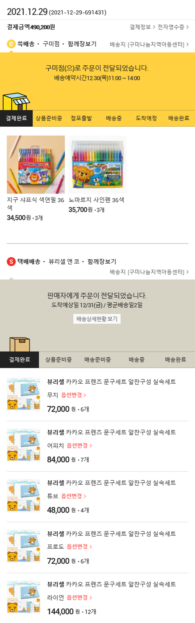 카카오 프렌즈 문구세트 알찬구성 실속세트 - 튜브4개 (개당 12,000원)