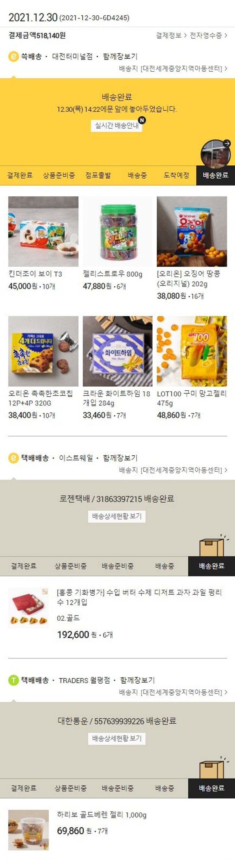 기부자님이 사용한 기부포인트 30,000원, 물품배송비 4,000원, 가격상승분 18,500원, 100원 미만 지원금 40원, 결제 수수료 6,921원, 기타 사업비는 행복나눔재단이 부담했습니다. (기부후기 발송시점에 최종 업데이트 됩니다.) 실제 쇼핑몰에서 확인되는 배송현황을 캡처한 내용입니다. 실시간 자료와는 차이가 있을 수 있습니다.