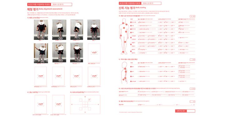 체형, 자세 및 신체 기능에 대한 재평가를 진행합니다. 초기 평가 때와 변화되는 지점을 확인합니다. |