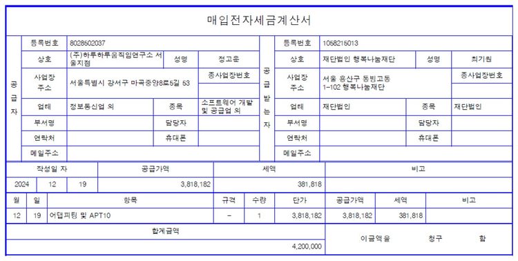 | 기부금 결제, 연말정산 관리, 기부금 영수증 발급 |