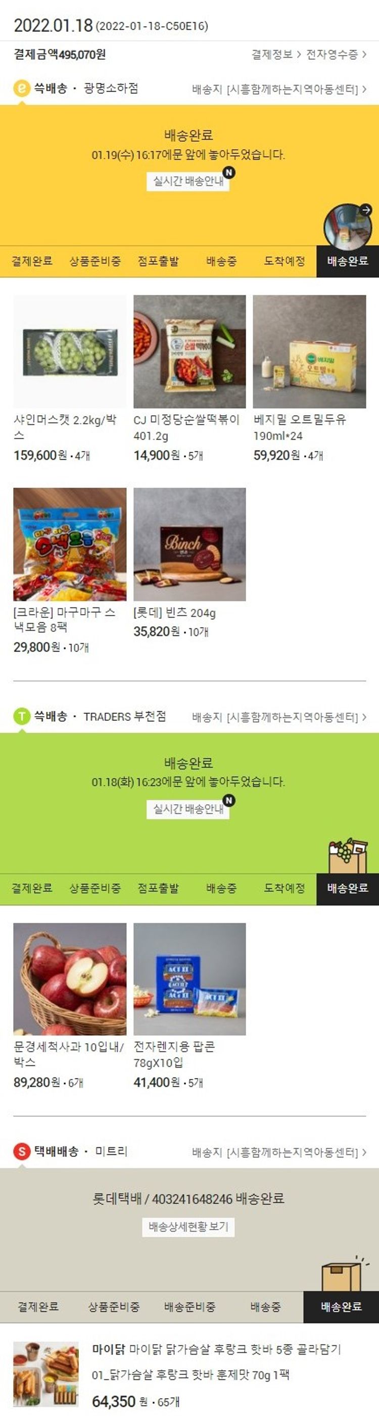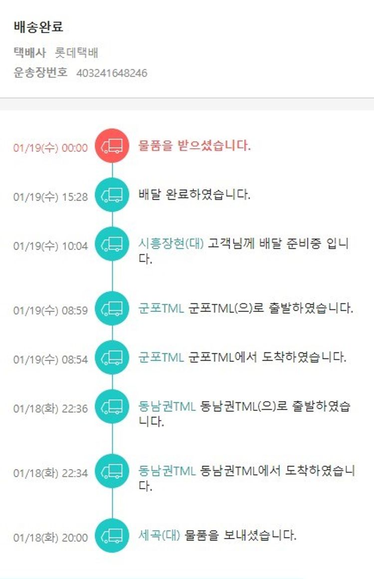기부자님이 사용한 기부포인트 53,700원, 가격상승분 20원, 100원 미만 지원금 50원, 결제 수수료 10,933원, 기타 사업비는 행복나눔재단이 부담했습니다. (기부후기 발송시점에 최종 업데이트 됩니다.) 실제 쇼핑몰에서 확인되는 배송현황을 캡처한 내용입니다. 실시간 자료와는 차이가 있을 수 있습니다.