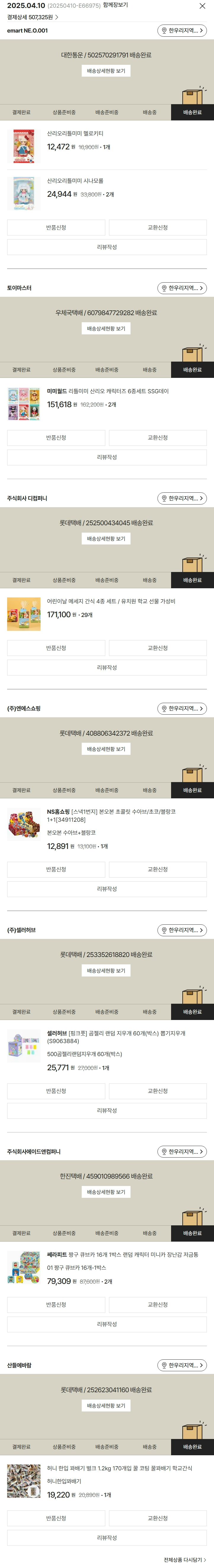 물품배송비 10,000원, 가격상승분 10,160원, 100원 미만 지원금 65원, 결제 수수료 10,711원, 기타 사업비는 행복나눔재단이 부담했습니다. (기부후기 발송시점에 최종 업데이트 됩니다.) 실제 쇼핑몰에서 확인되는 배송현황을 캡처한 내용입니다. 실시간 자료와는 차이가 있을 수 있습니다.